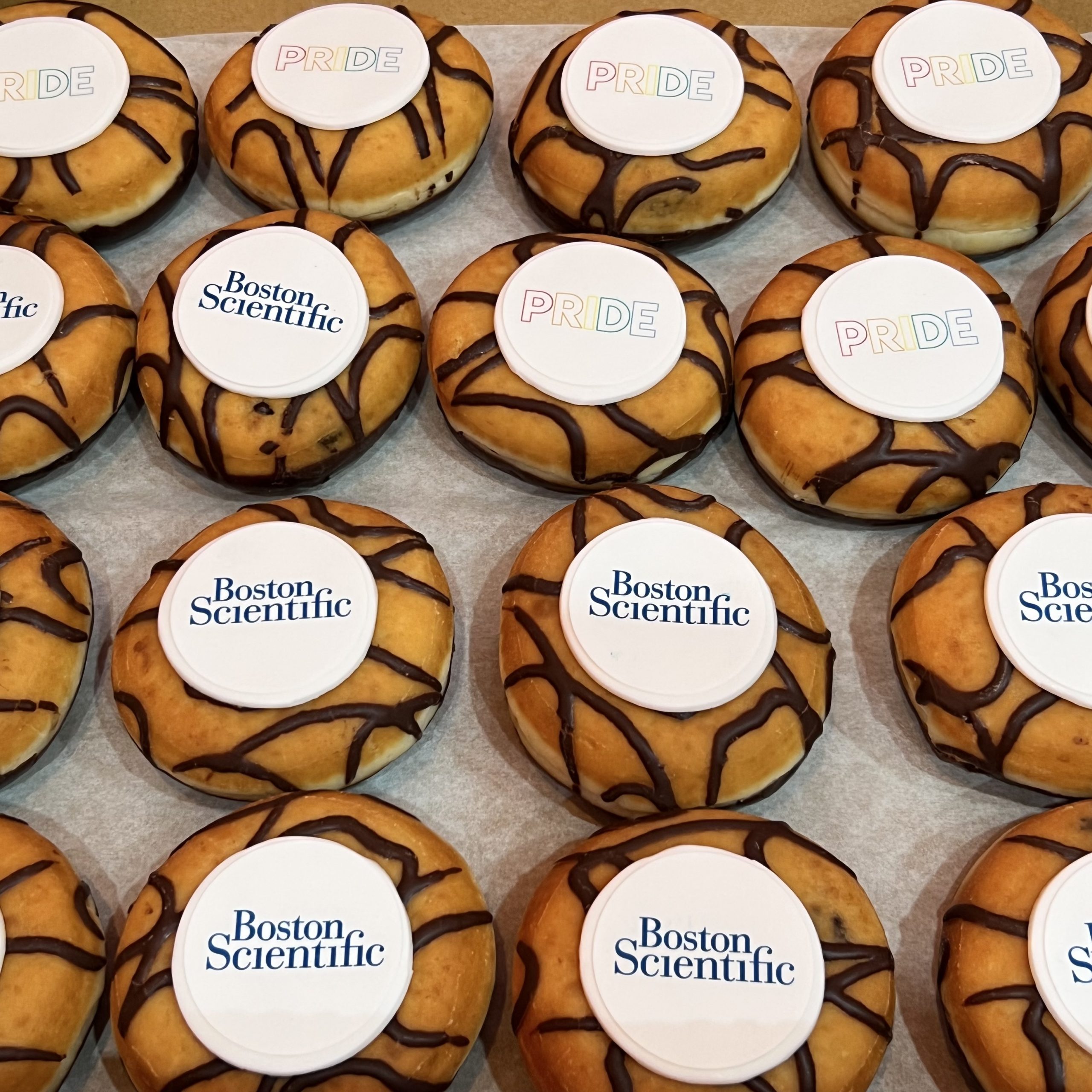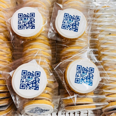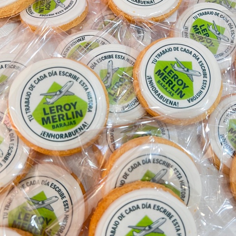 Galletas, tartas, cupcakes, cakepops y más. Diseñamos con tu logo, colores o mensaje corporativo.