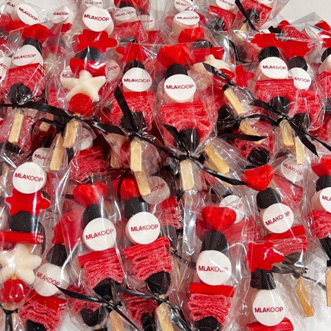 Preparamos paquetes de chuches embolsadas, en botes o en brochetas, para que endulces tu eventos con tu marca.