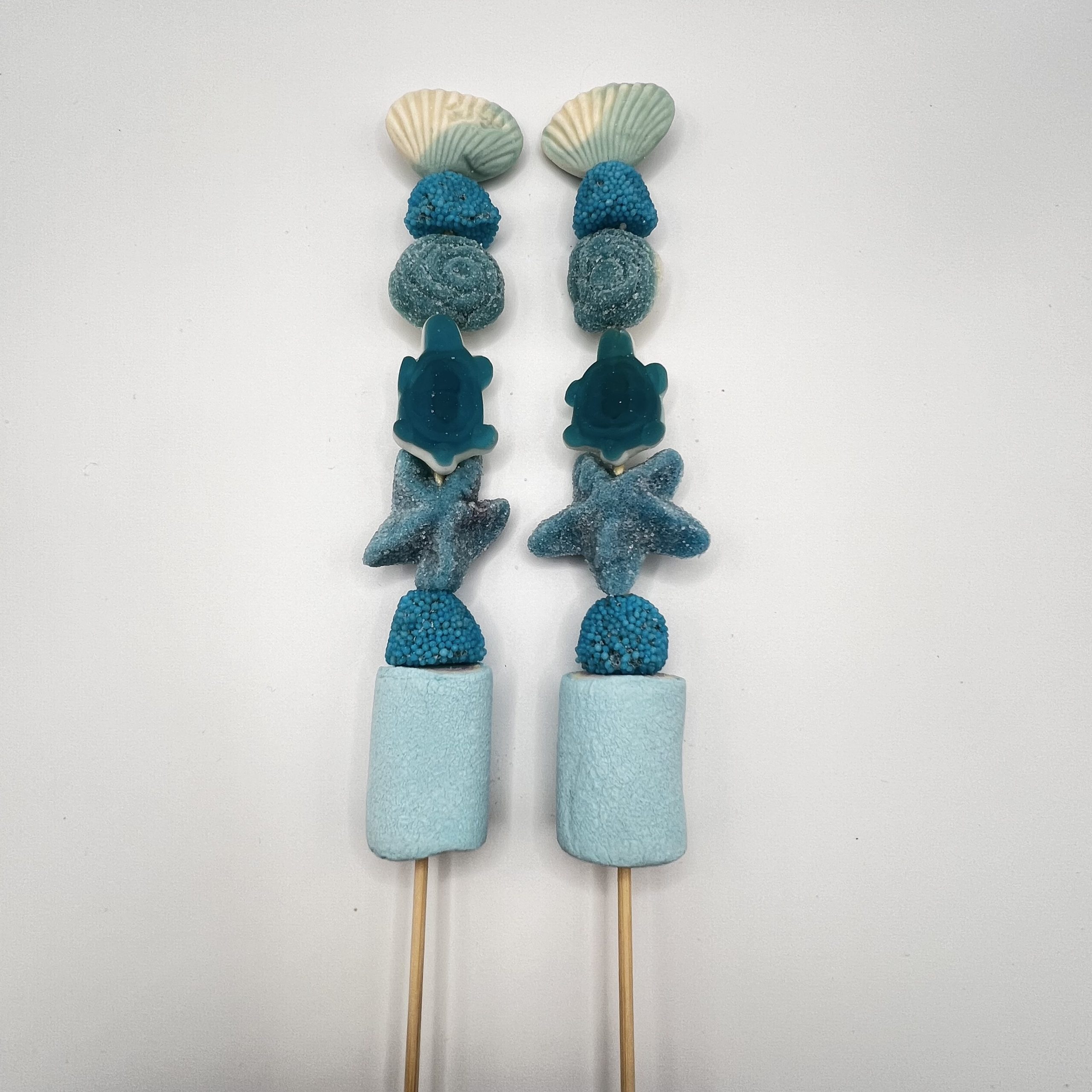 Deliciosa brocheta de 7 gominolas de color azul. Nuestras brochetas son perfectas para tus eventos, regalos o celebraciones. 12 unidades.