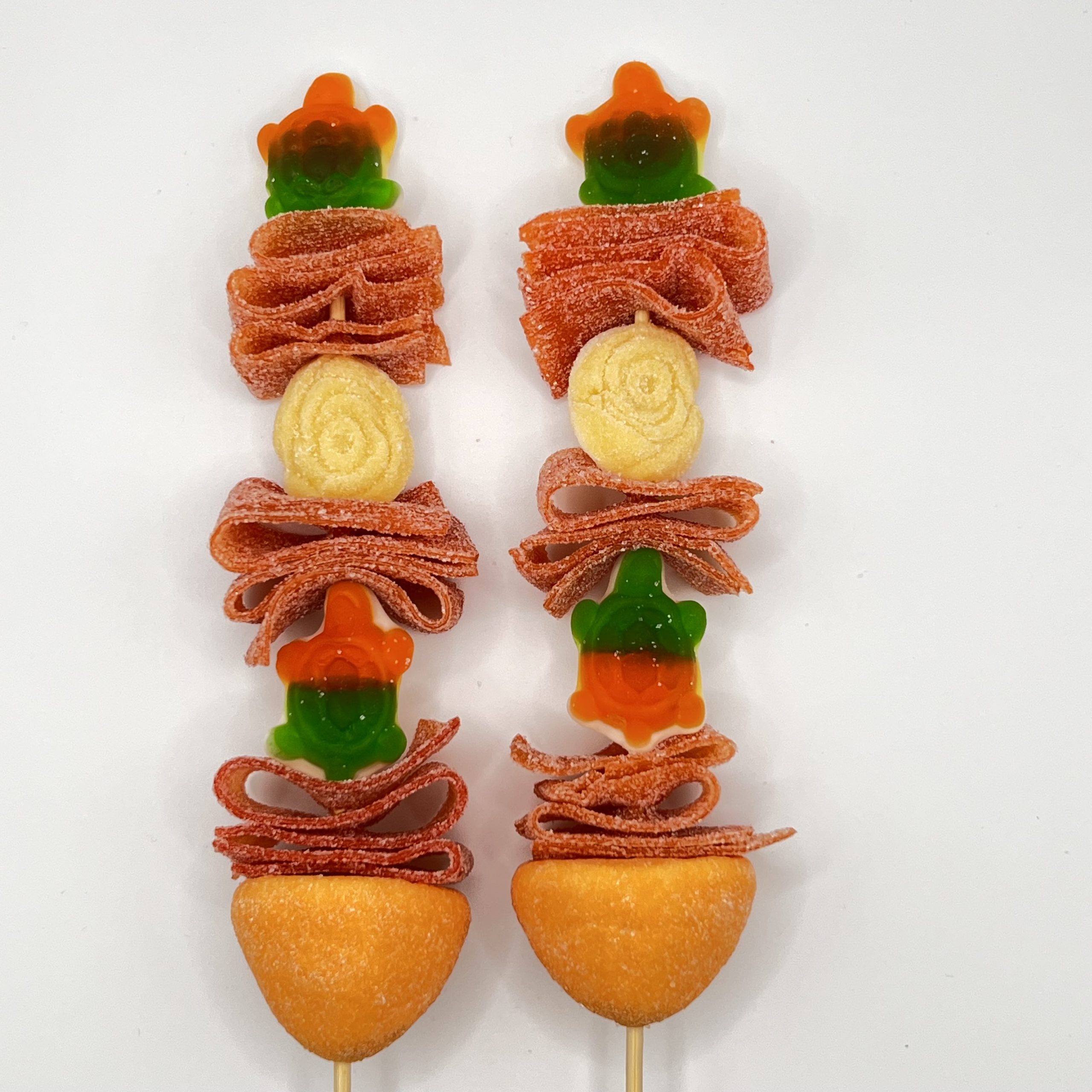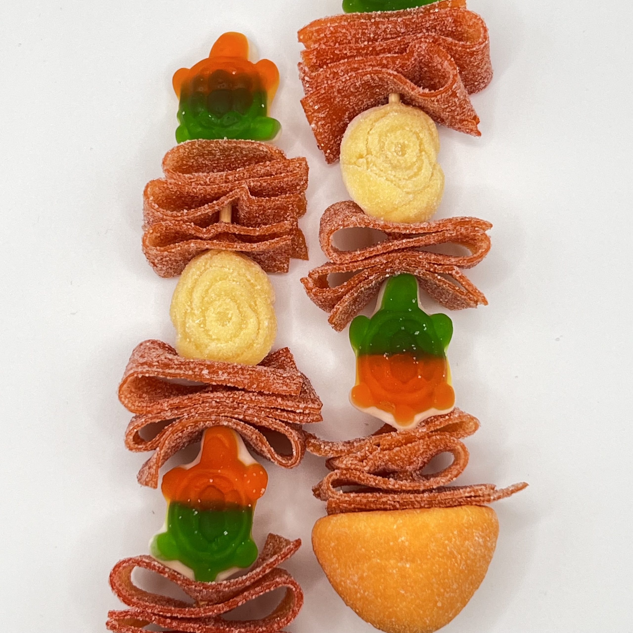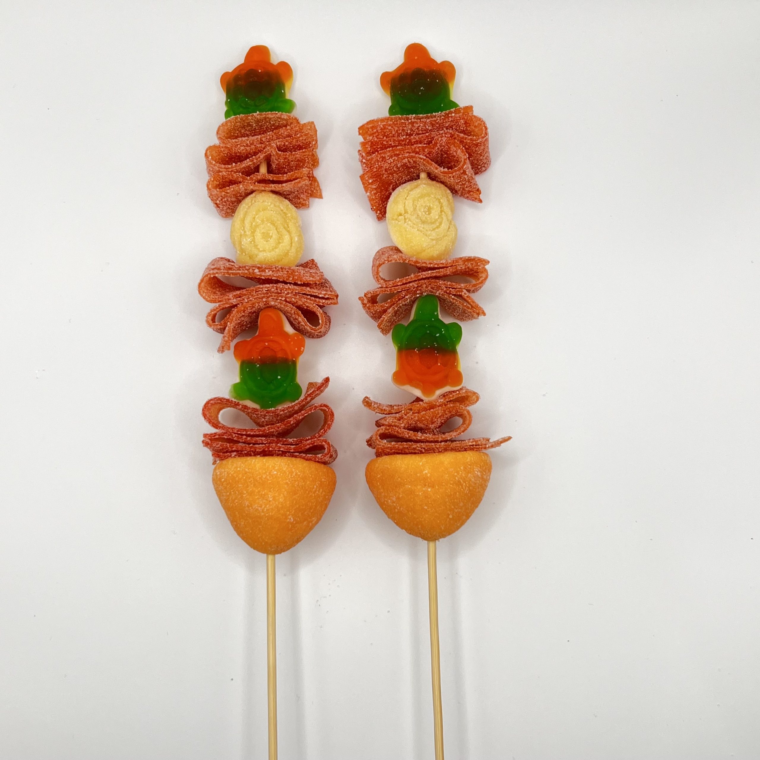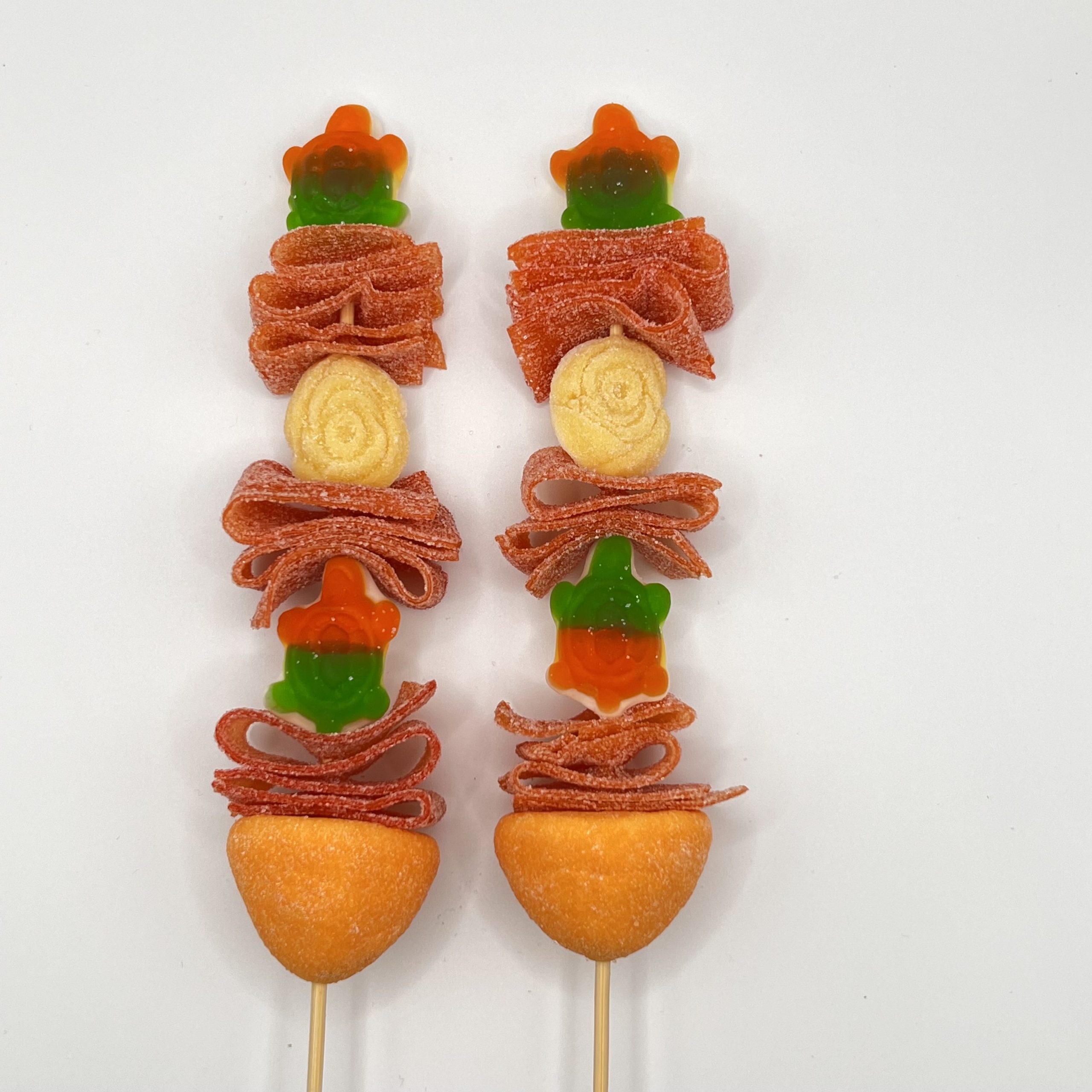 Deliciosa brocheta de gominolas en colores naranjas y verdes. Perfecta para cualquier evento o regalo.